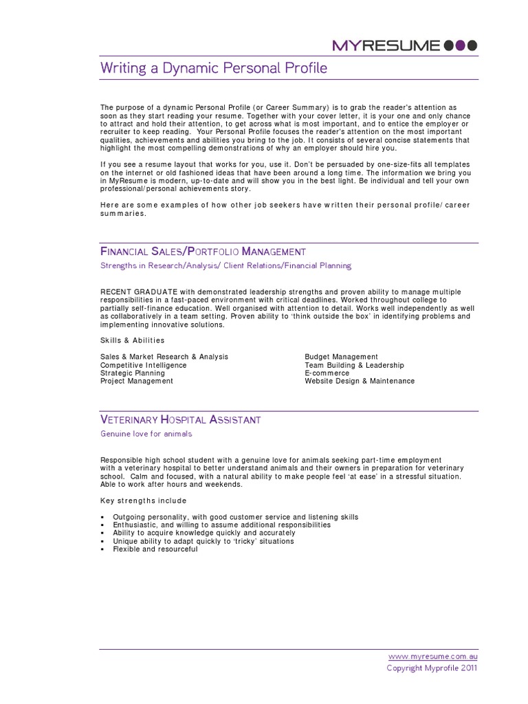Always add a cover letter, even when it isn't explicitly. Also known as a personal profile or personal summary, a personal statement is essentially a blurb for your cv. This is because recent graduates won't generally have that much work experience, apart from a few internships. The personal profile is your chance to tell ubc about your achievements and experiences, what you've learned from them, and the challenges you will be asked for a reference who can speak to your response. 25 cv profiles to help you get noticed by employers.